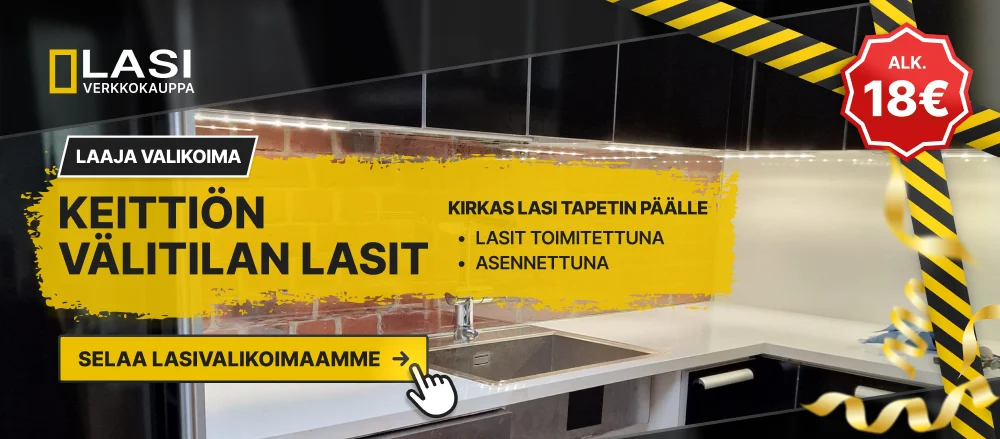 Alumiini lasituslistatAlumiiniovetAlumiiniseinätErikoislasitKaidelasitKattolasitKeittiön välitilan lasitLaatumerkkien lasitustuotteetKuviolasit ja koristelasitLasien työstötLasiovetLasiseinätLiukuovetPeililiukuovetPöytälasitSaunan lasiseinätSuihkuseinätTakanedus lasitLasit ja ikkunatLasitushelatLasitustarvikkeetLED valotNäyteikkunatOvilasitPeilitPoistopistePVC ikkunatSisustuslasitTaustamaalatut lasitTerassilasitTiski ja vitriinilasitTurvalasit