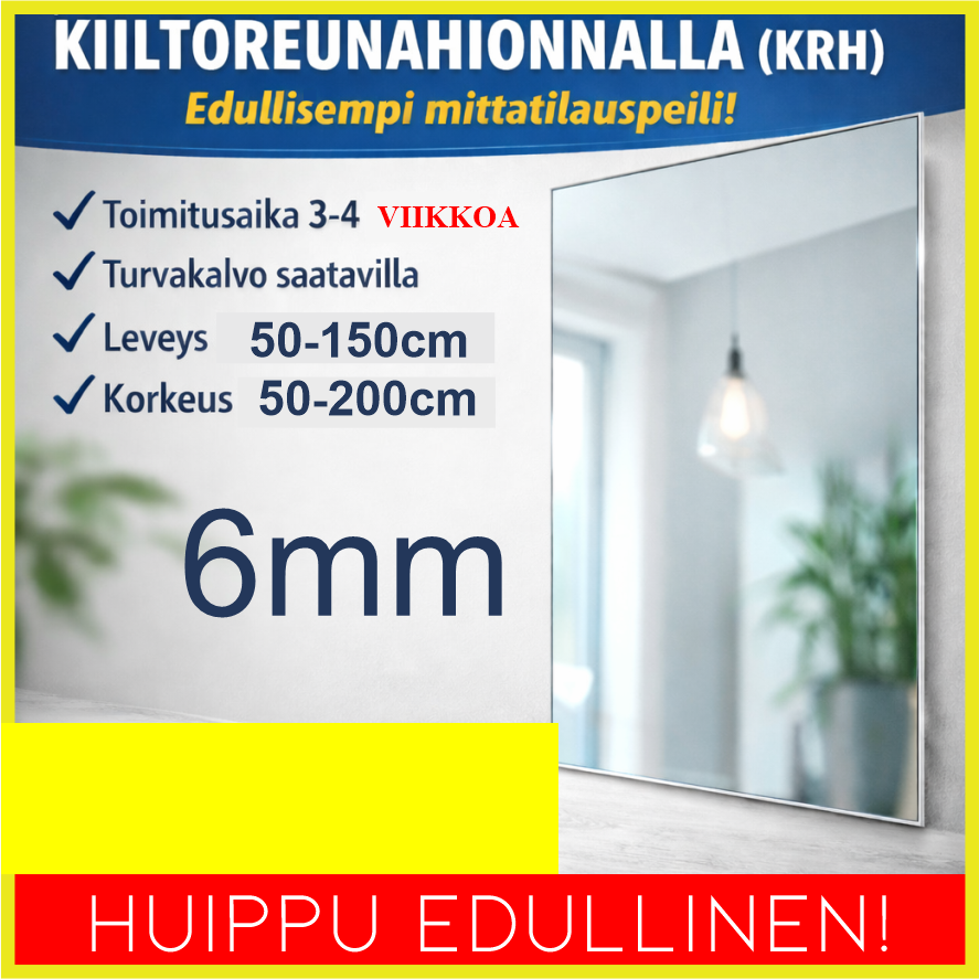 6 mm peili kiiltoreunahionnalla (KRH) – edullinen mittatilauspeili