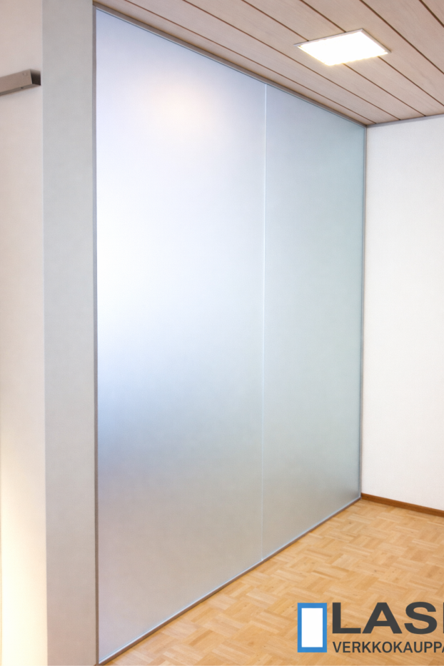 Toimiston lasiseinä 8 mm karkaistusta ja etsatusta lasista on moderni, turvallinen ja ajaton ratkaisu